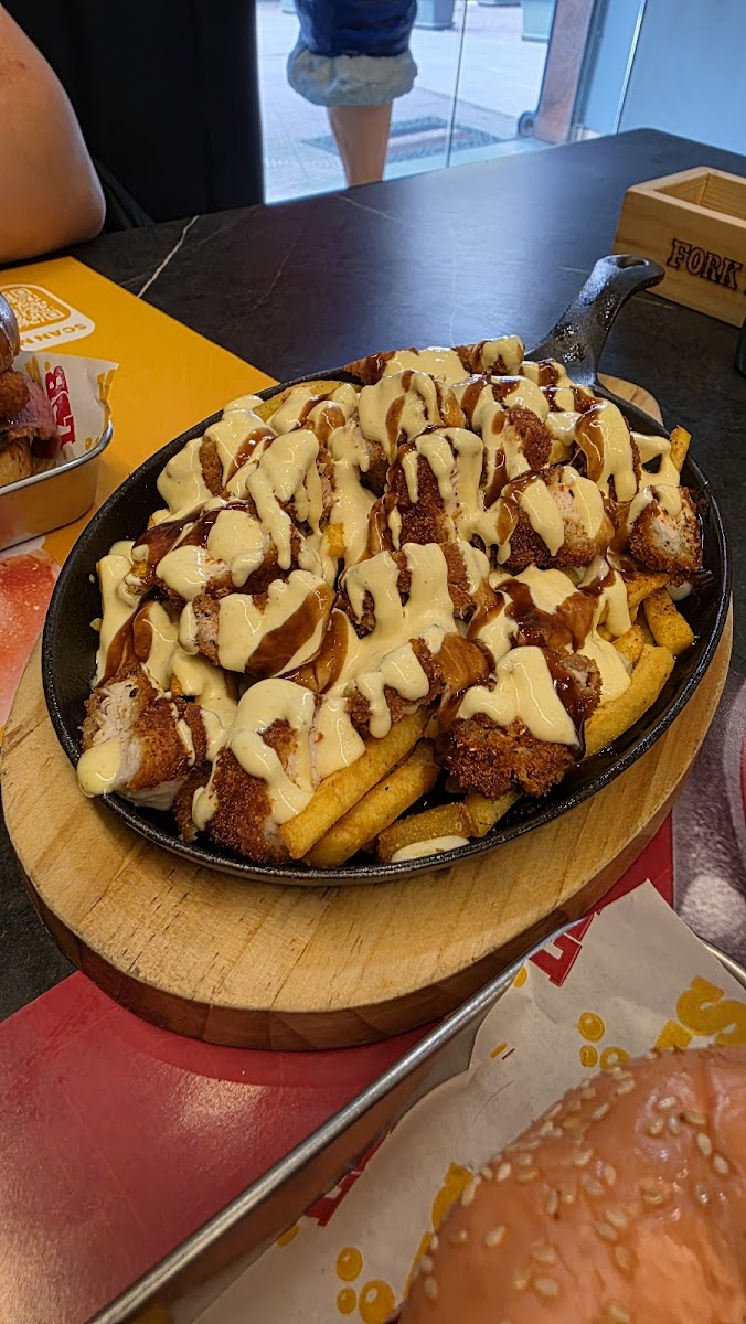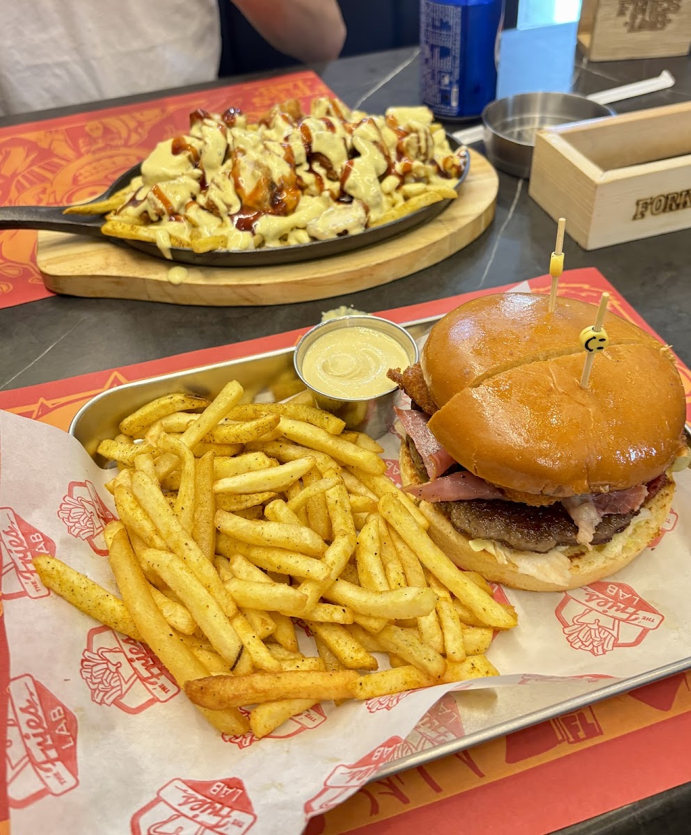 Fries Lab offers tasty, satisfying food that leans on the indulgent side. The burgers and fries are flavorful and well-prepared, definitely the highlights of the menu. The halloumi appetizers were okay—nothing special. One downside was the cleanliness; the floor had a few tissues scattered around (2–4), which took away from the overall experience. While the food was good, it’s quite heavy, so not ideal for anyone on a diet. For me, it’s more of a one-time try—worth experiencing, but I wouldn’t go back. Still, no major complaints aside from the richness and a bit of cleanup needed.